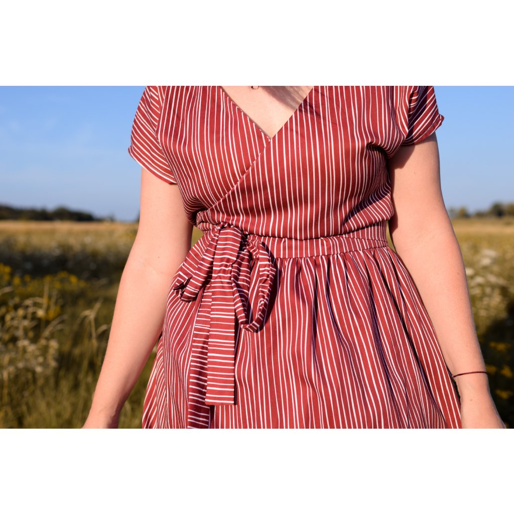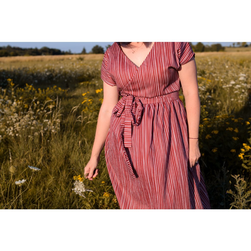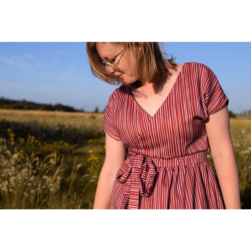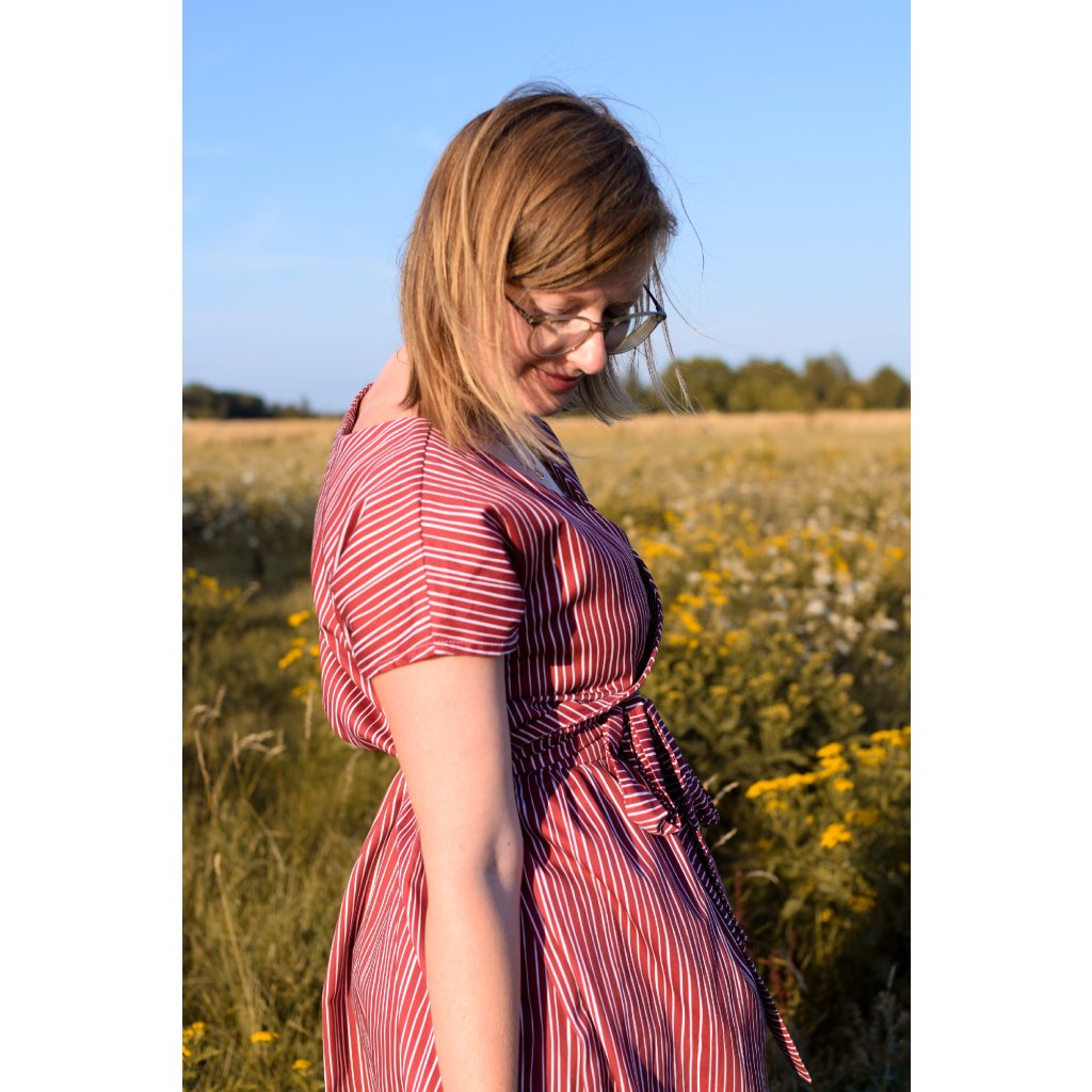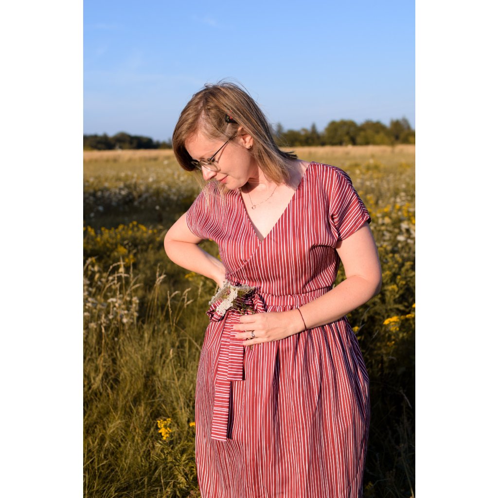 Díky zavinování si snadno přizpůsobíš šířku pasu, takže šaty padnou více velikostem. Jsou pohodlné, variabilní a spolehlivé pro celý den – do práce, na setkání s přáteli i večer ven.