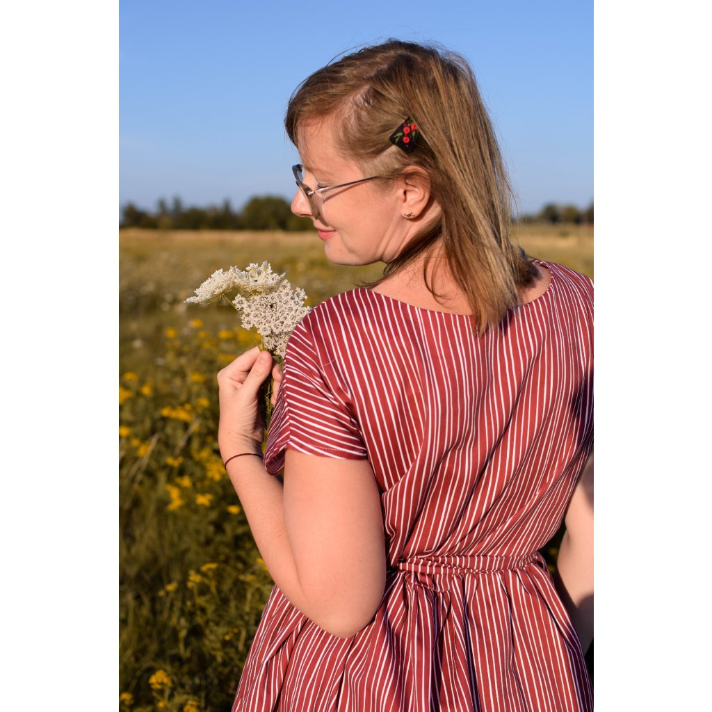 Na fotografiích s pruhovanými šaty je vidět, jak vypadá střih Diana na postavě.