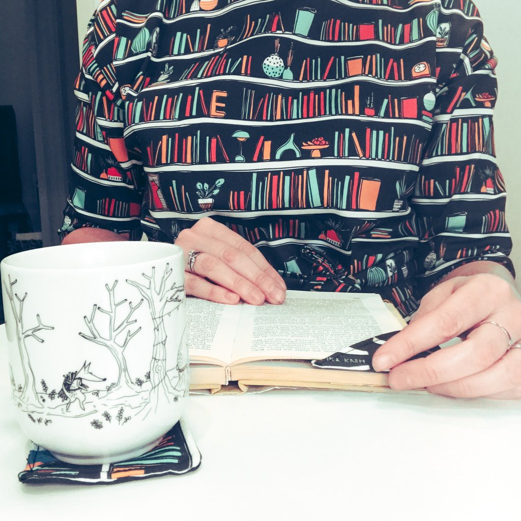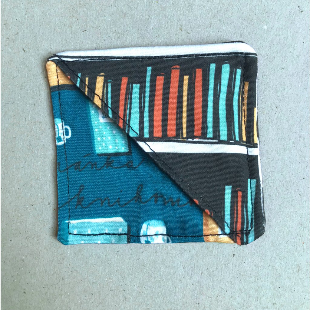 Jsou šité z bavlněného saténu z autorské látky Knihomolka.
