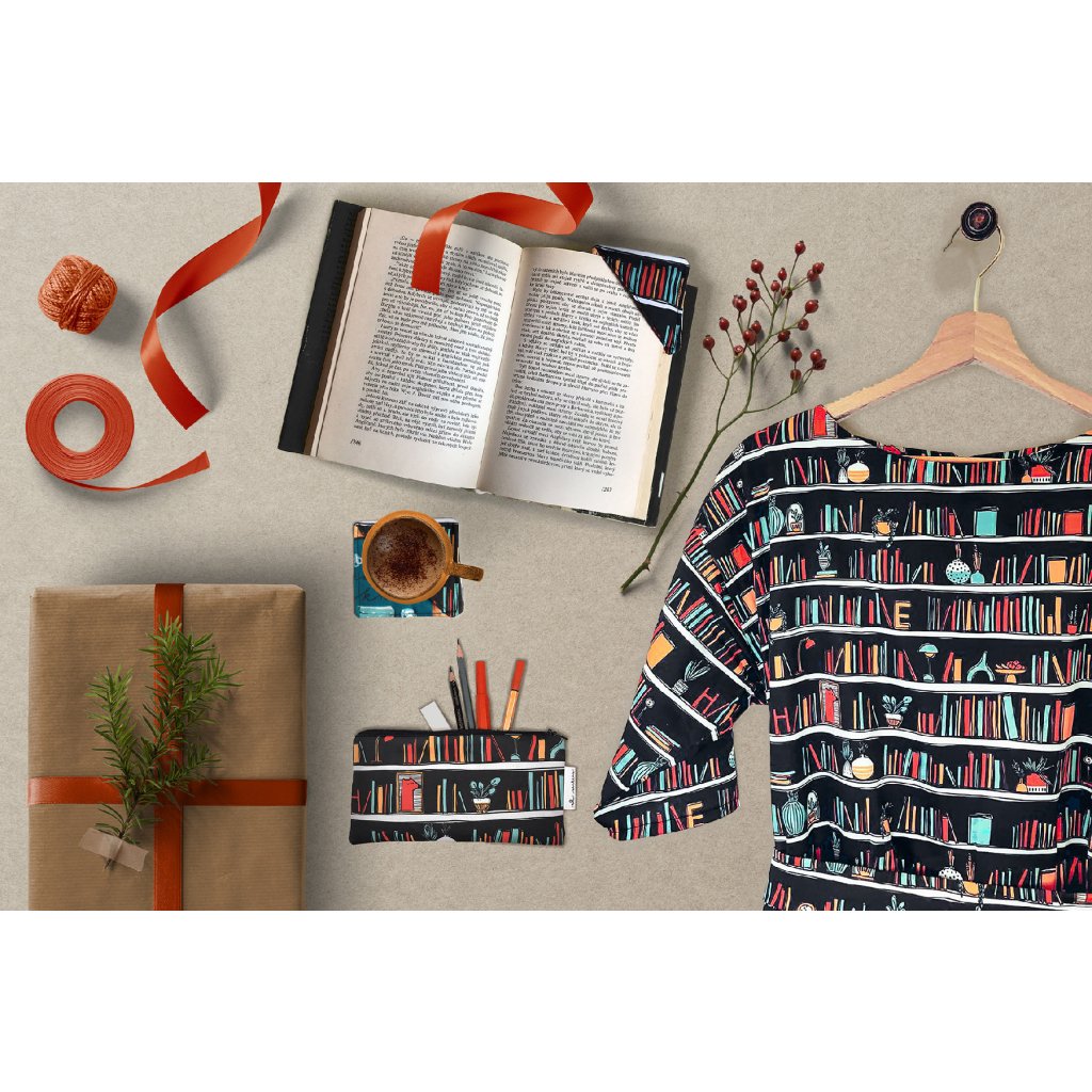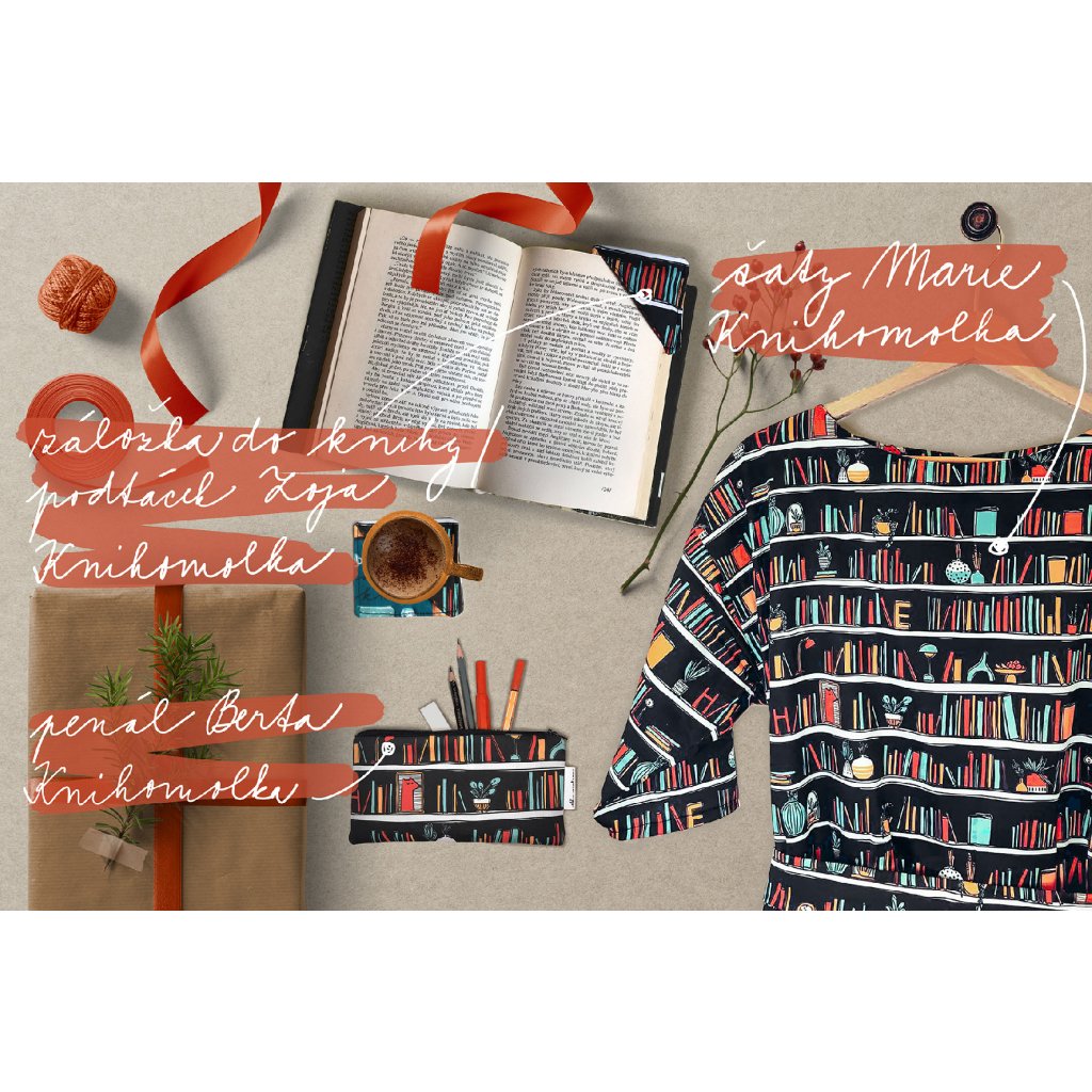 - úžasné šaty Marie s autorským tiskem Knihomolka, stačí si vybrat jen délku rukávu