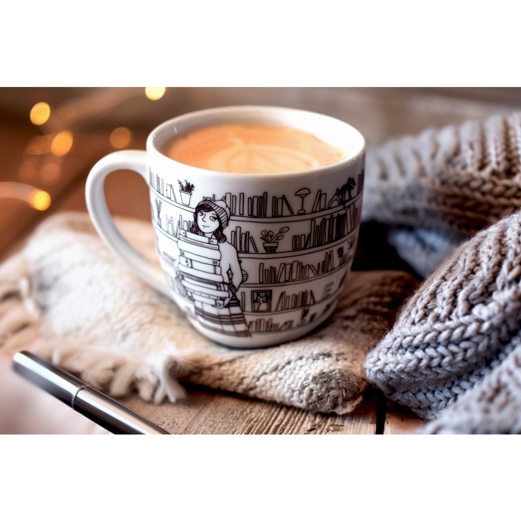 S naším hrnkem pro knihomolku se každá chvíle s knihou promění v kouzelnější a pohodovější. Jemná autorská ilustrace Tě přenese do kouzelné knihovny plné příběhů, kde by chtěl zůstat každý knihomol. Hrnek je vyrobený z kvalitního českého porcelánu z Dubí a jeho oblý tvar je jako stvořený k tomu, aby padl do dlaní.