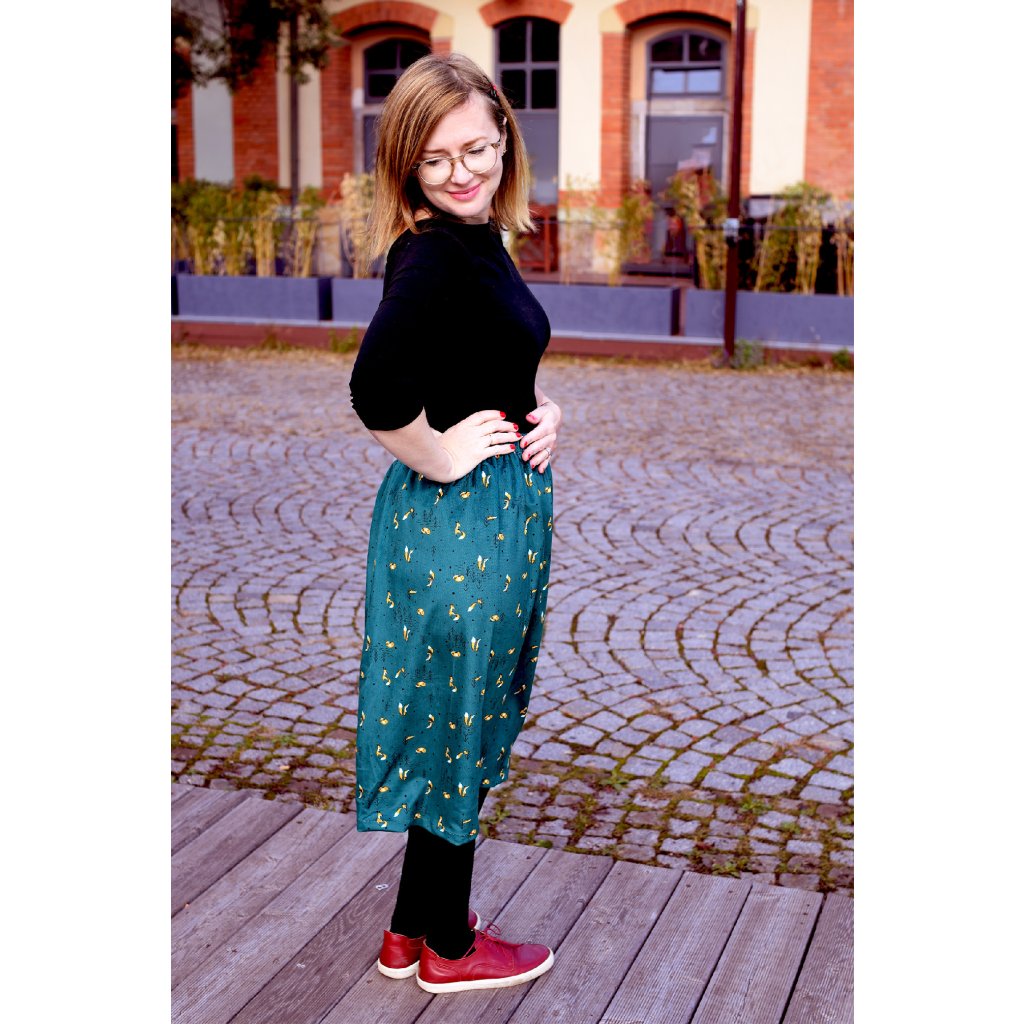 Sukně Marta je kousek, který nebudeš chtít sundat! Je šitá z příjemného sametu s naším autorským tiskem Lišácká, který Tě zahřeje v chladnějších dnech. Má pružný pas, který se Ti přizpůsobí a budeš se díky němu cítit ohromně pohodlně v každé chvíli.