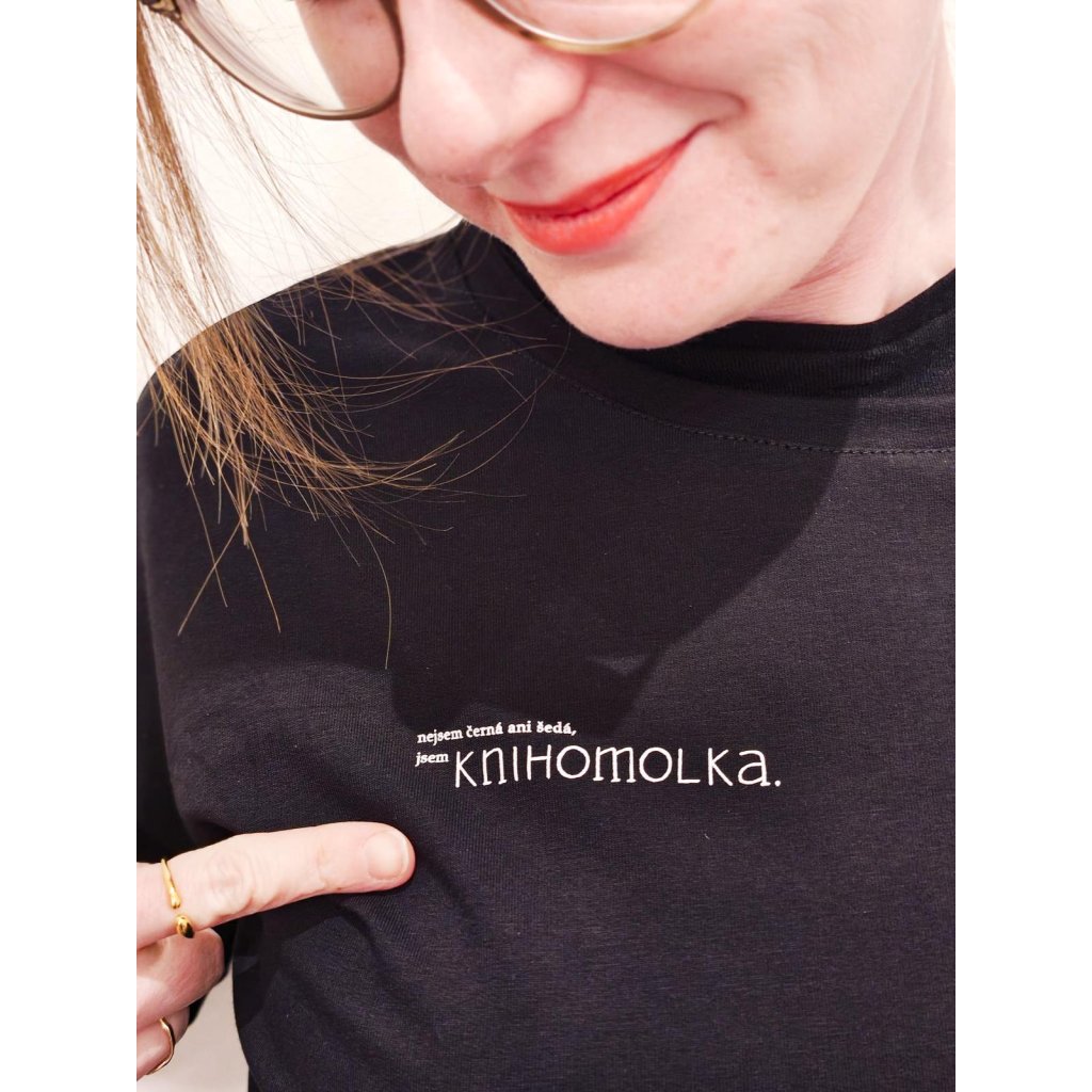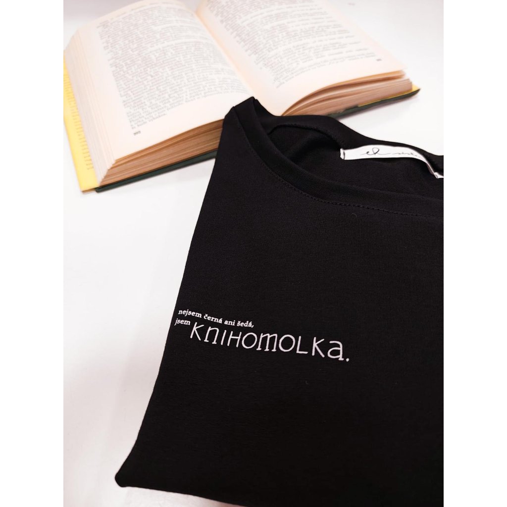 Mikina má autorský potisk textu - nejsem černá ani šedá, jsem knihomolka.