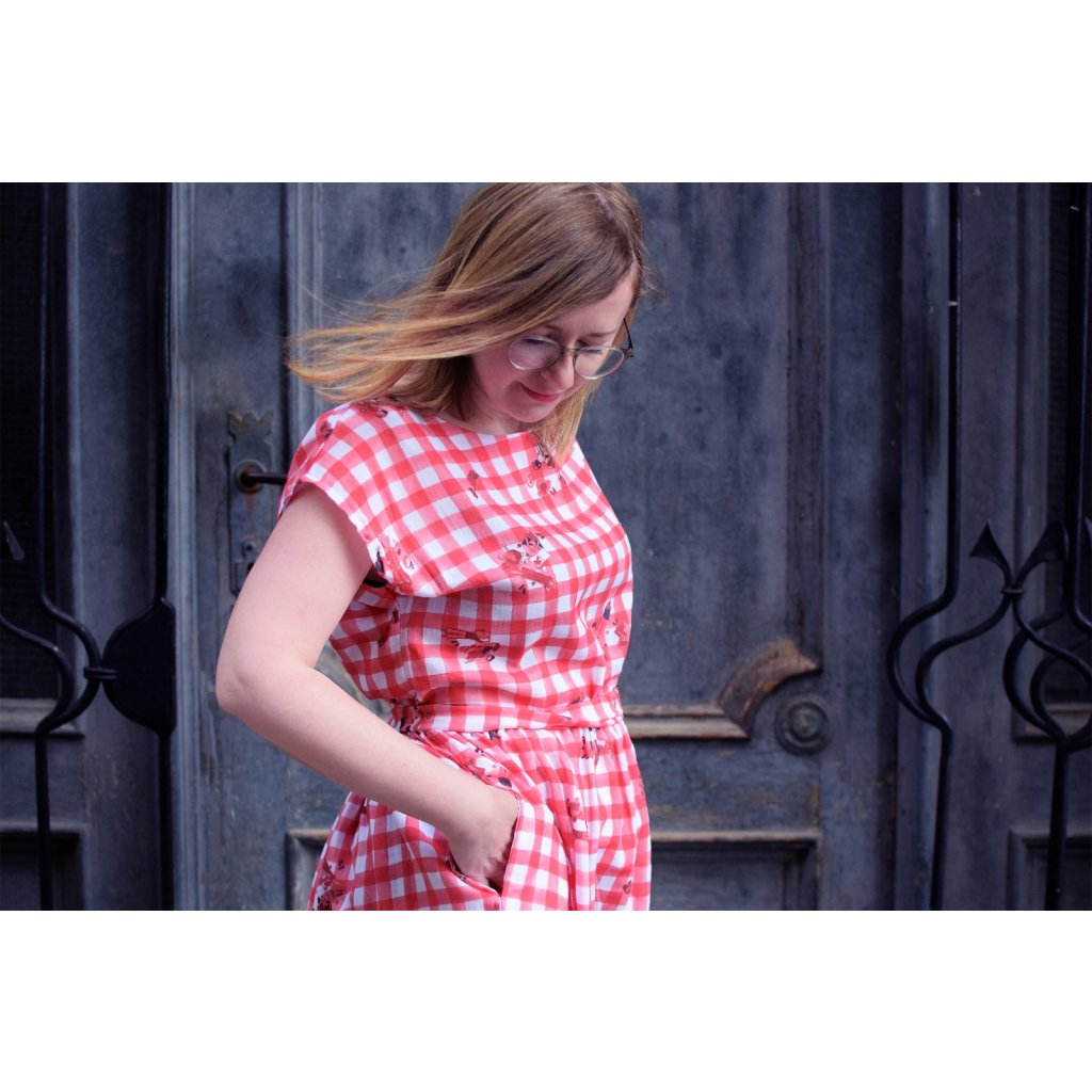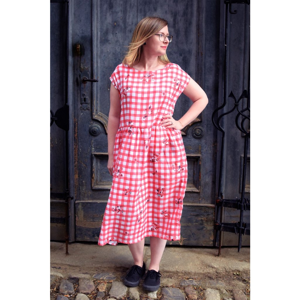 Šaty Marie jsou volného střihu, spadlé rukávy. Jsou navíc variabilní - volný střih se dá jednoduše změnit přepásáním páskem a podkasáním živůtku na šaty zdůrazňující Tvůj pas. Délka pod kolena a kapsy, jak jinak :). Sukně je mírně řasená.