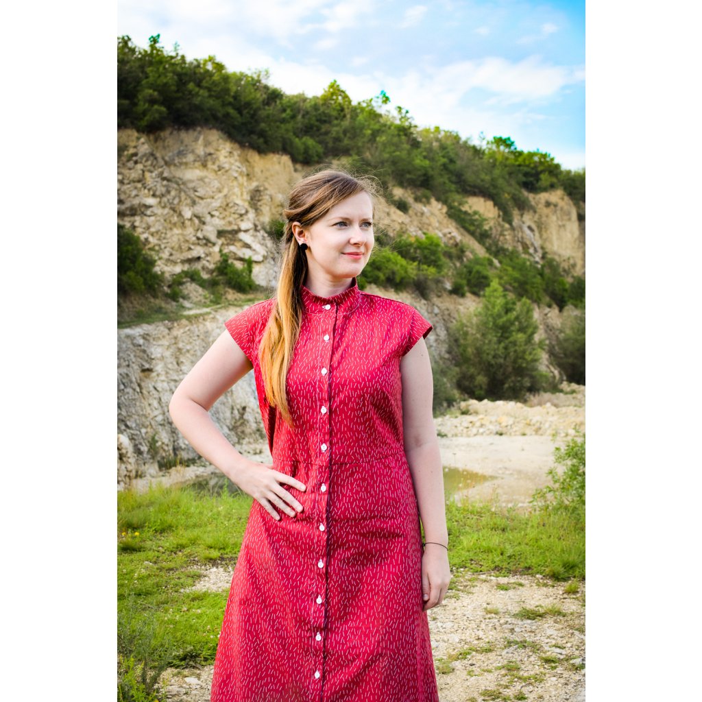 Pohodlné košilové šaty Michelle, přestřižené v pase a midi délce.