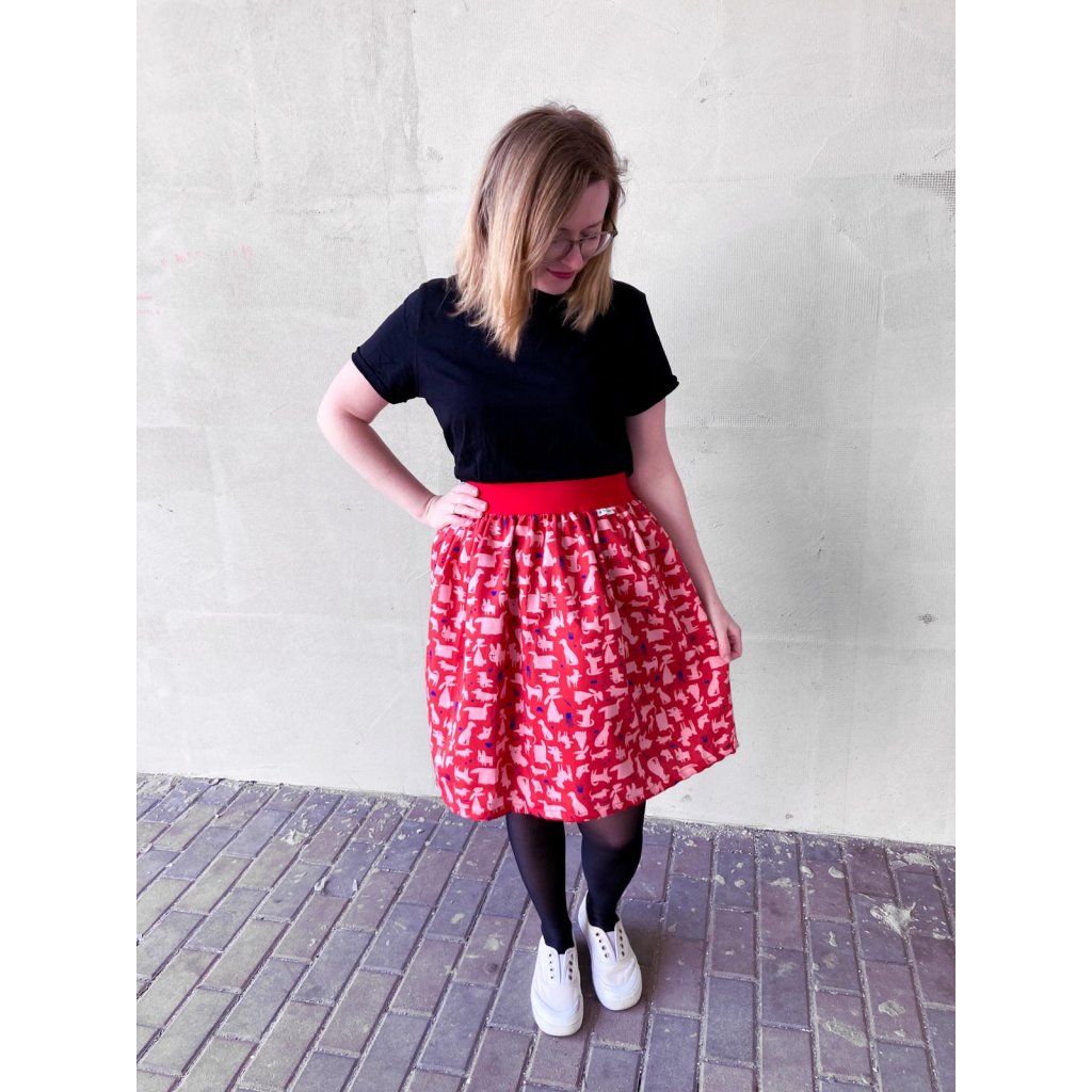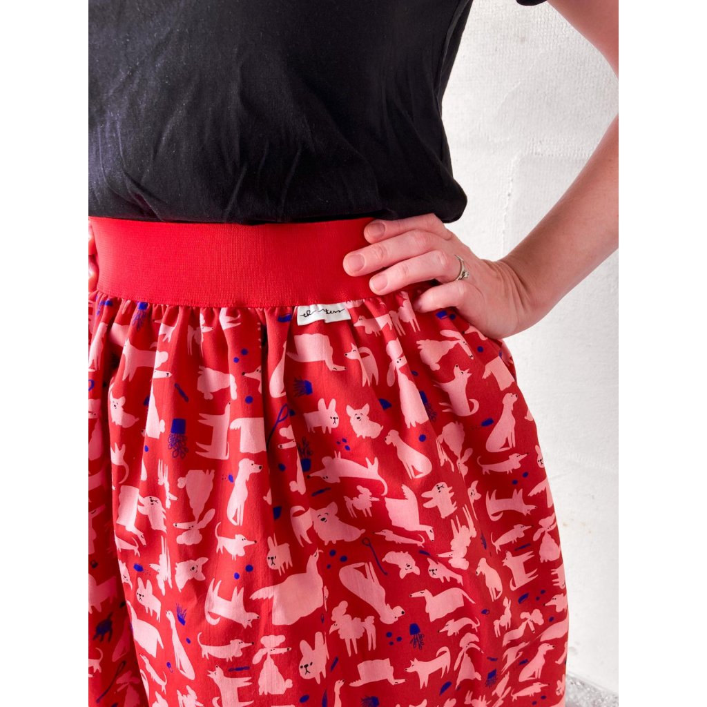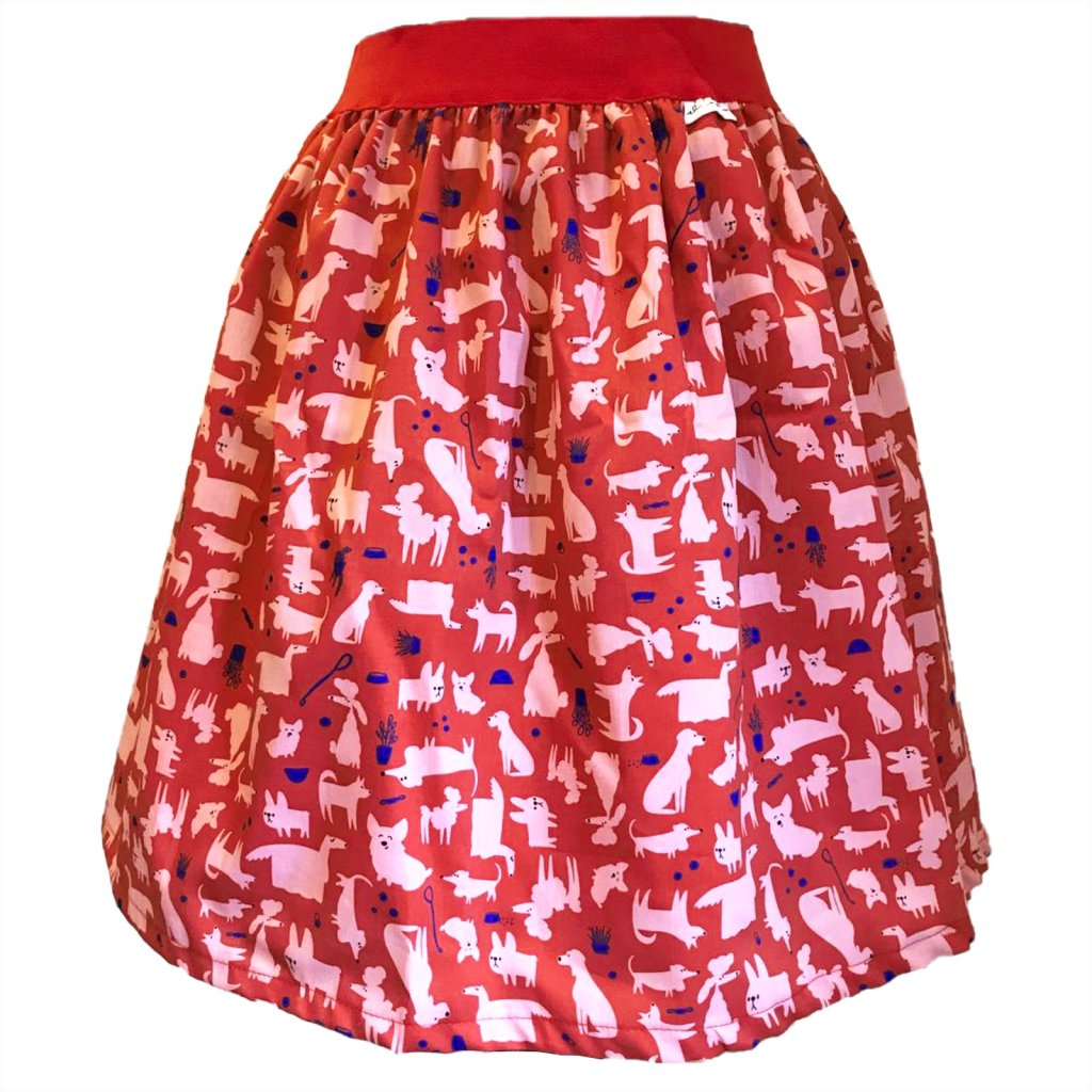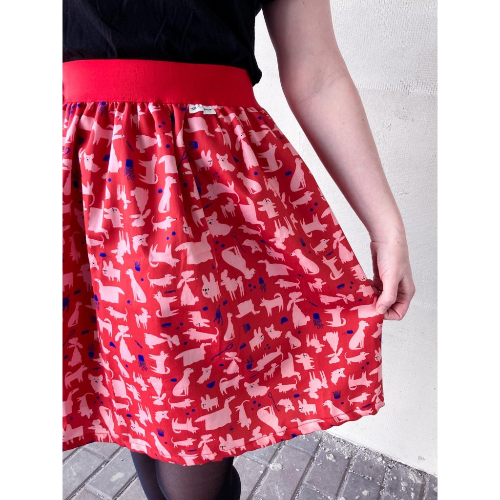Sukně do pasu z látky s autorským tiskem Tmavá pejskařská z kolekce Do parku.